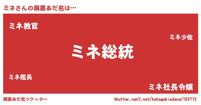 | 意味不明あだ名 | 『自称ミネ』『住所不定無職ミネ(8歳)』 |