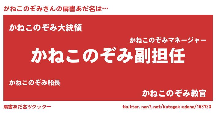 | 意味不明あだ名 | 『永久保存かねこのぞみ』 |