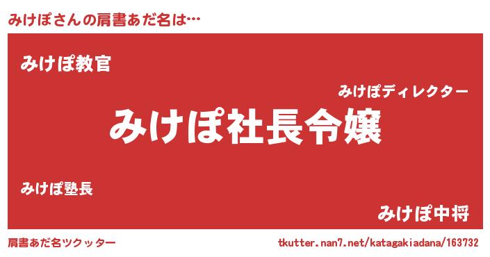 | 胡散臭い通販商品みたいなあだ名 | 『必ず成功する霊験あらたかなお札…その名も「みけぽ」』 |
