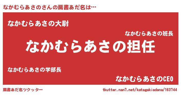 | 女子向けラノベタイトル風あだ名 | 『なかむらあさのの契約王妃』 |