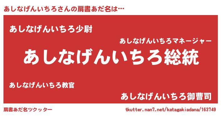| 意味不明あだ名 | 『自称あしなげんいちろ』 |