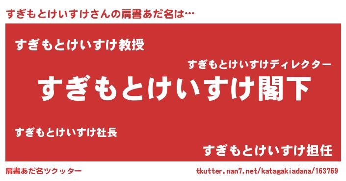 | 欧米人風あだ名 | 『ケンブリッジすぎもとけいすけ』 |