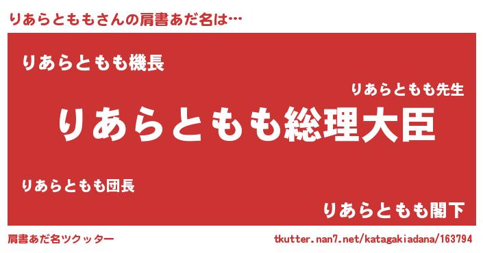 | 意味不明あだ名 | 『りあらとももフォーエバー』 |