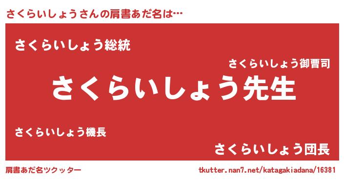 | ヘコむあだ名 | 『さくらいしょう(小並感)』『さくっ子』 |