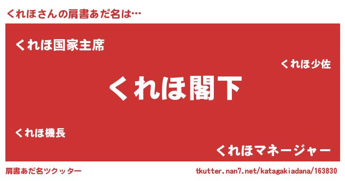 | 男性向けラノベタイトル風あだ名 | 『Re:くれほから始める異世界生活』 |