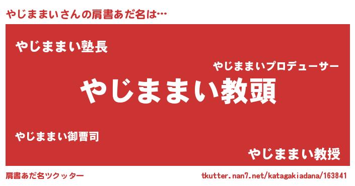 | 男性向けラノベタイトル風あだ名 | 『やじままいという概念が存在しない退屈な世界 』 |