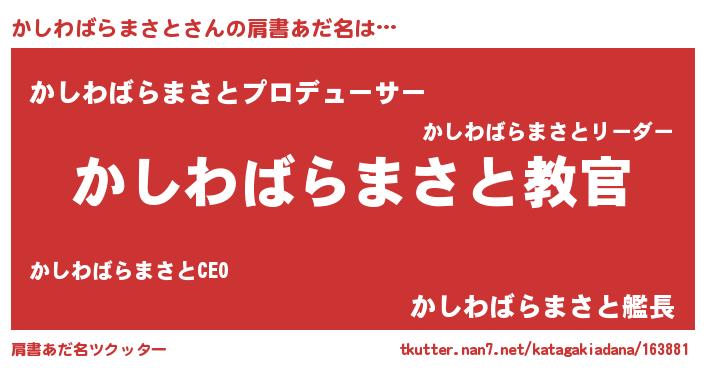 | 伝説のあだ名 | 『孤高の遊び人かしわばらまさと』 |