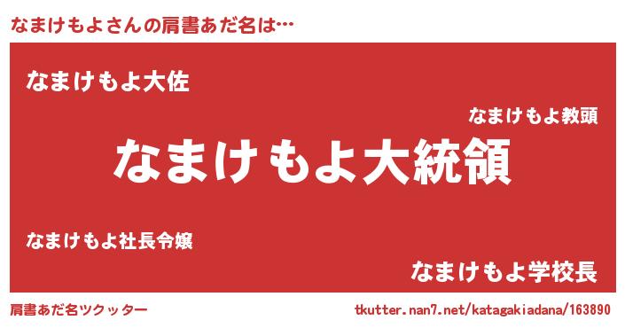| 可愛いあだ名 | 『なまちー』『なまぷりん』 |