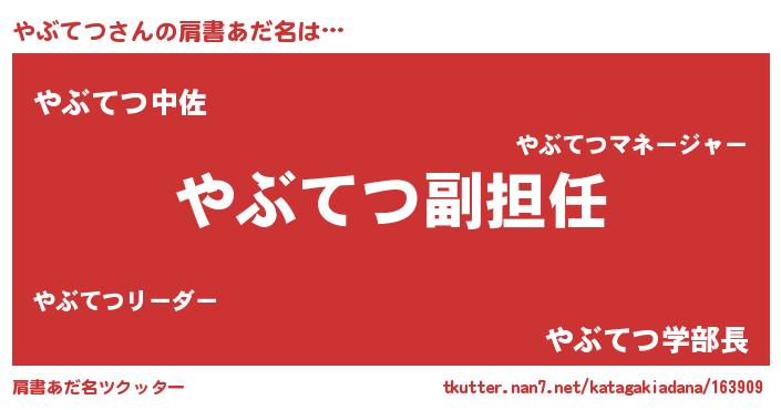 | ヒーロー風カッコイイあだ名 | 『ネオヤブテツ』『友情の使者やぶてつ』 |