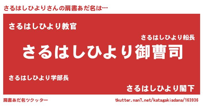 | ヘコむあだ名 | 『さるっふぃ~』『さるはしひより(笑)』 |