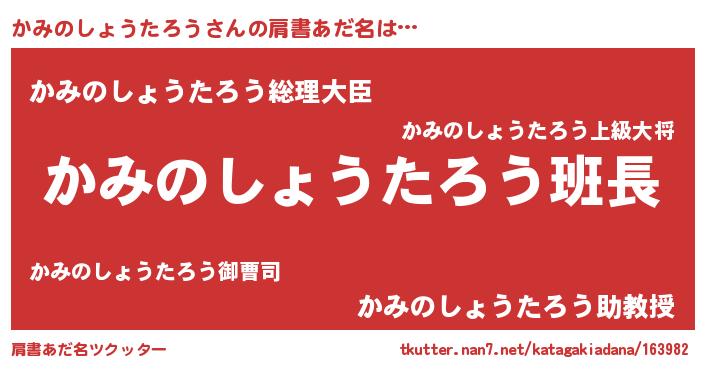 | 女子向けラノベタイトル風あだ名 | 『かみのしょうたろうは平凡を望む』 |