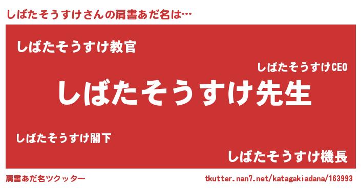| ヘコむあだ名 | 『しばたそうすけ(小並感)』『しばっふぃ~』 |