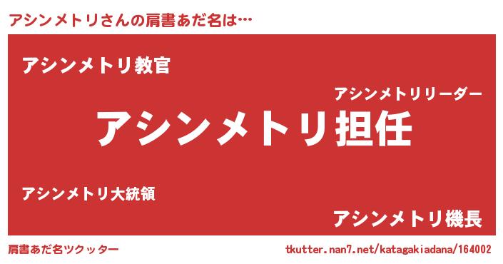 | 男性向けラノベタイトル風あだ名 | 『アシンメトリという概念が存在しない退屈な世界 』 |