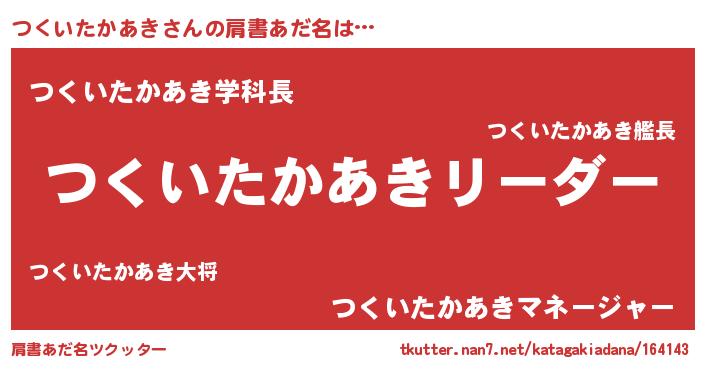 | 男性向けラノベタイトル風あだ名 | 『つくいたかあきの嫁は女の子じゃないと思った?』 |