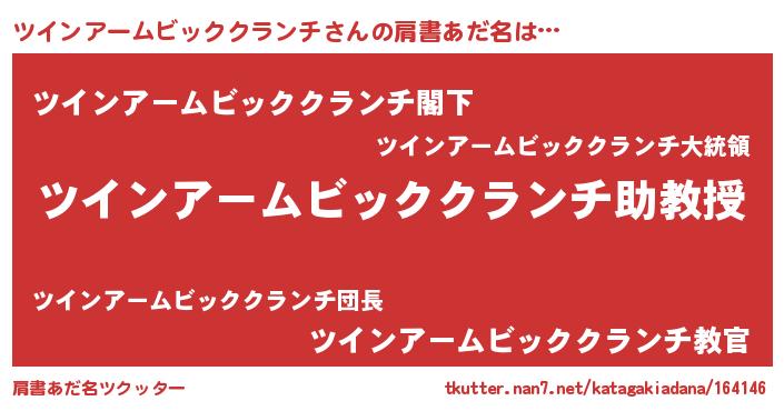 | 女子向けラノベタイトル風あだ名 | 『ツインアームビッククランチ恋絵巻』 |