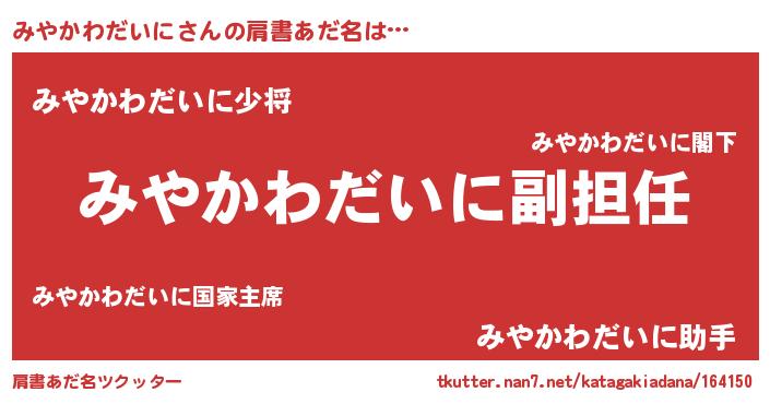| ヘコむあだ名 | 『みやかわだいに(震え声)』『酢こんぶ』 |