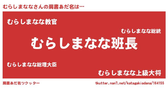 | 男性向けラノベタイトル風あだ名 | 『むらしまななの嫁は女の子じゃないと思った?』 |