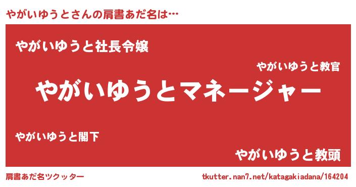 | ヒーロー風カッコイイあだ名 | 『スーパーヤガイユウト』『仮面ヤガダー』 |