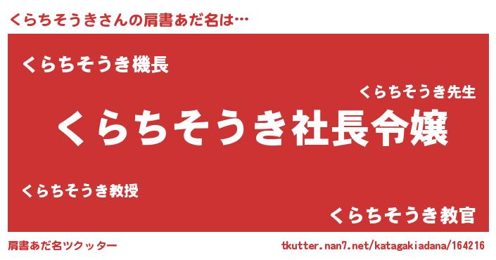 | 男性向けラノベタイトル風あだ名 | 『くらちそうきの憂鬱』 |