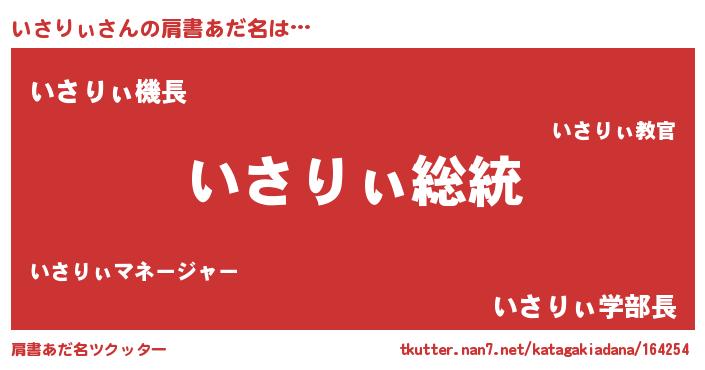 | ヒーロー風カッコイイあだ名 | 『ウルトラ戦士イサリィ』『仮面イサダー』 |