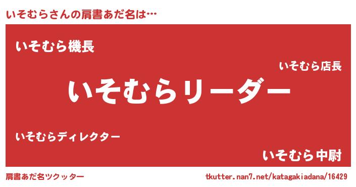 | ヘコむあだ名 | 『いそぷりん』『いそっふぃ~』 |