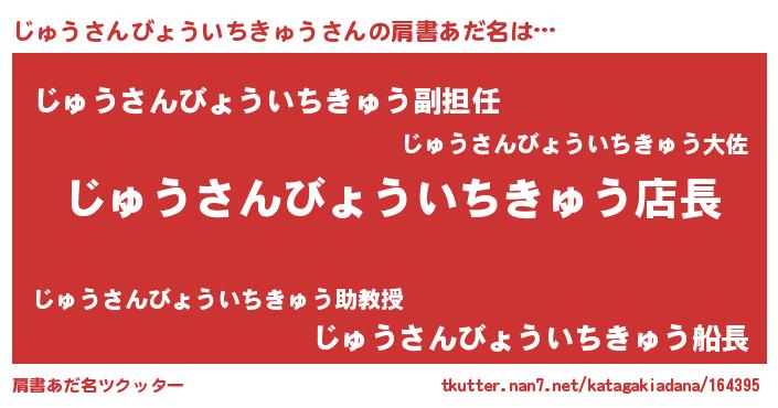 | ヒーロー風カッコイイあだ名 | 『スーパージュウサンビョウイチキュウ』 |
