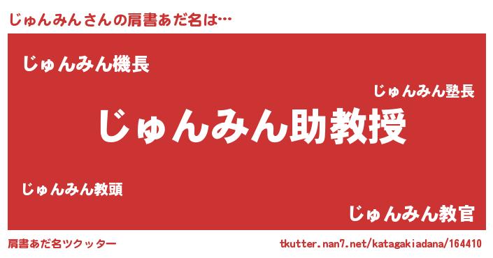 | 男性向けラノベタイトル風あだ名 | 『ノーゲーム・ノージュンミン』 |
