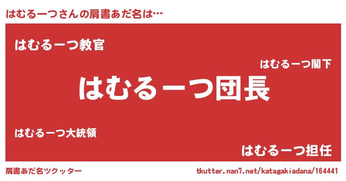 | 女子向けラノベタイトル風あだ名 | 『はむるーつは平凡を望む』 |