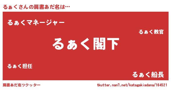 | ヘコむあだ名 | 『るぁく(小並感)』『るぁを』 |