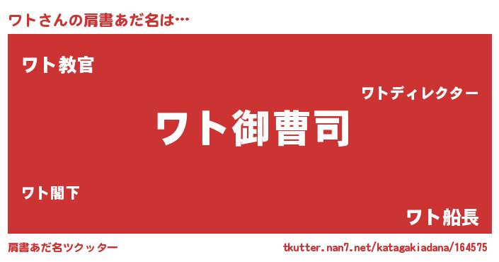 | ファンタジー風あだ名 | 『ワトフェル』『ヴァルワトーナ』 |