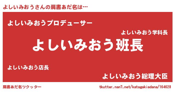 | 意味不明あだ名 | 『とにかく怪しいよしいみおう』 |