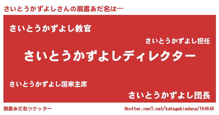| 男性向けラノベタイトル風あだ名 | 『はたらくさいとうかずよしさま!』 |