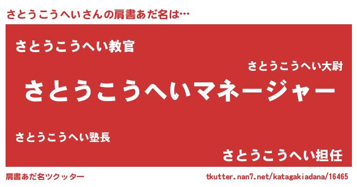 | 意味不明あだ名 | 『住所不定無職さとうこうへい(11歳)』 |