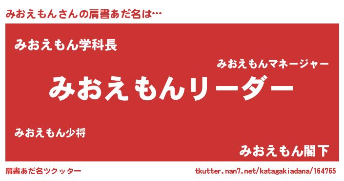 | 男性向けラノベタイトル風あだ名 | 『みおえもんの嫁は女の子じゃないと思った?』 |