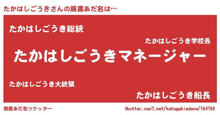 | 意味不明あだ名 | 『自称たかはしごうき』 |