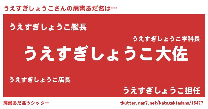 | ヘコむあだ名 | 『うえすぎしょうこ(笑)』『うえもー』 |