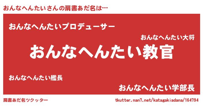| 男性向けラノベタイトル風あだ名 | 『この素晴らしい世界におんなへんたいを!』 |