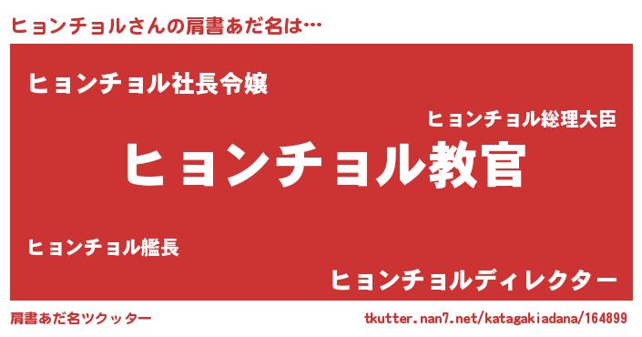 | 女子向けラノベタイトル風あだ名 | 『乙女ゲームの破滅フラグしかない悪役ヒョンチョルに転生してしまった…』 |