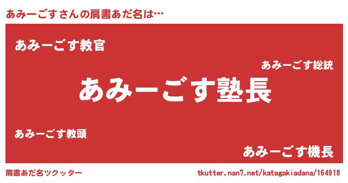 | 男性向けラノベタイトル風あだ名 | 『あみーごすの嫁は女の子じゃないと思った?』 |