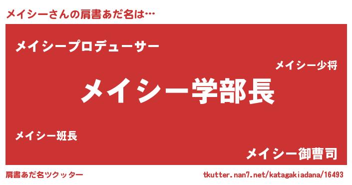 | 男性向けラノベタイトル風あだ名 | 『おまえをオタクにしてやるから、俺をメイシーにしてくれ! 』 |