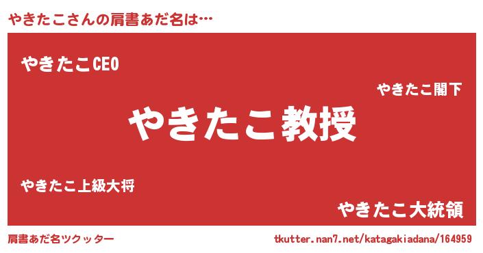 | ヒーロー風カッコイイあだ名 | 『愛の使者やきたこ』『スーパーヤキタコ』 |