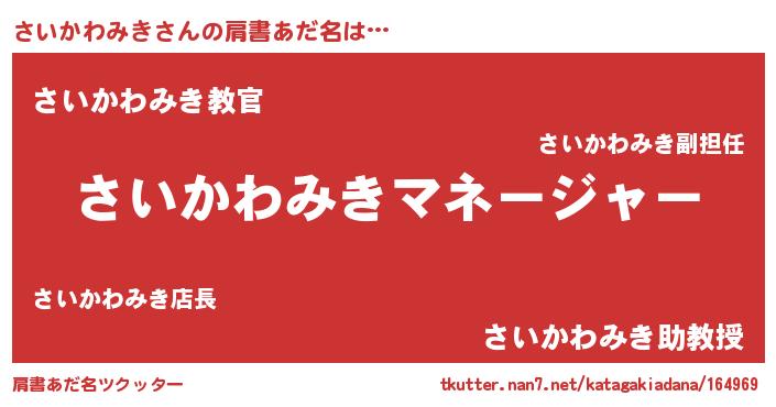 | 意味不明あだ名 | 『住所不定無職さいかわみき(7歳)』 |