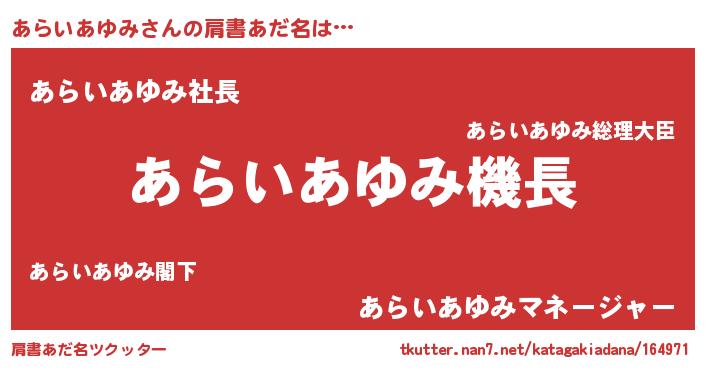 | 胡散臭い通販商品みたいなあだ名 | 『必ず成功する霊験あらたかなお札…その名も「あらいあゆみ」』 |