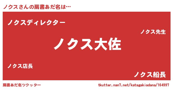 | ヘコむあだ名 | 『ノクス(笑)』『ノクにゅー』『牛乳』 |