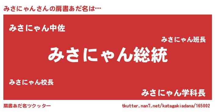 | 意味不明あだ名 | 『自称みさにゃん』『永久保存みさにゃん』 |