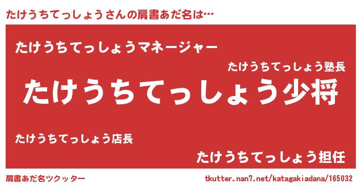 | ヘコむあだ名 | 『たけうちてっしょう(苦笑)』『たけお』 |