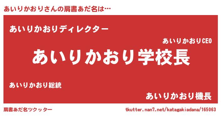 | 男性向けラノベタイトル風あだ名 | 『おまえをオタクにしてやるから、俺をあいりかおりにしてくれ! 』 |