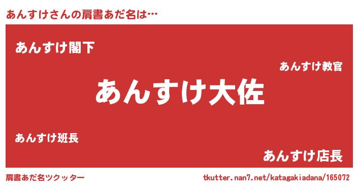 | 男性向けラノベタイトル風あだ名 | 『転生したらあんすけだった件』 |