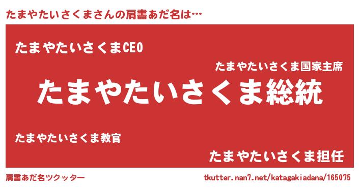 | 男性向けラノベタイトル風あだ名 | 『Re:たまやたいさくまから始める異世界生活』 |