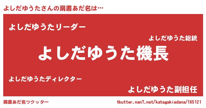 | 男性向けラノベタイトル風あだ名 | 『うちのよしだゆうたが世界を掌握している!』 |